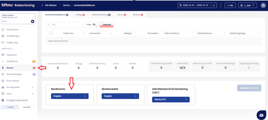 Kunden kan även göra bankkopplingen under avsnittet betala.